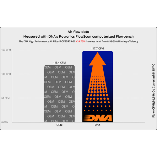 - Η ροή αυτού του νέου φίλτρου DNA είναι +24,75% μεγαλύτερη από το φίλτρο εργοστασίου!